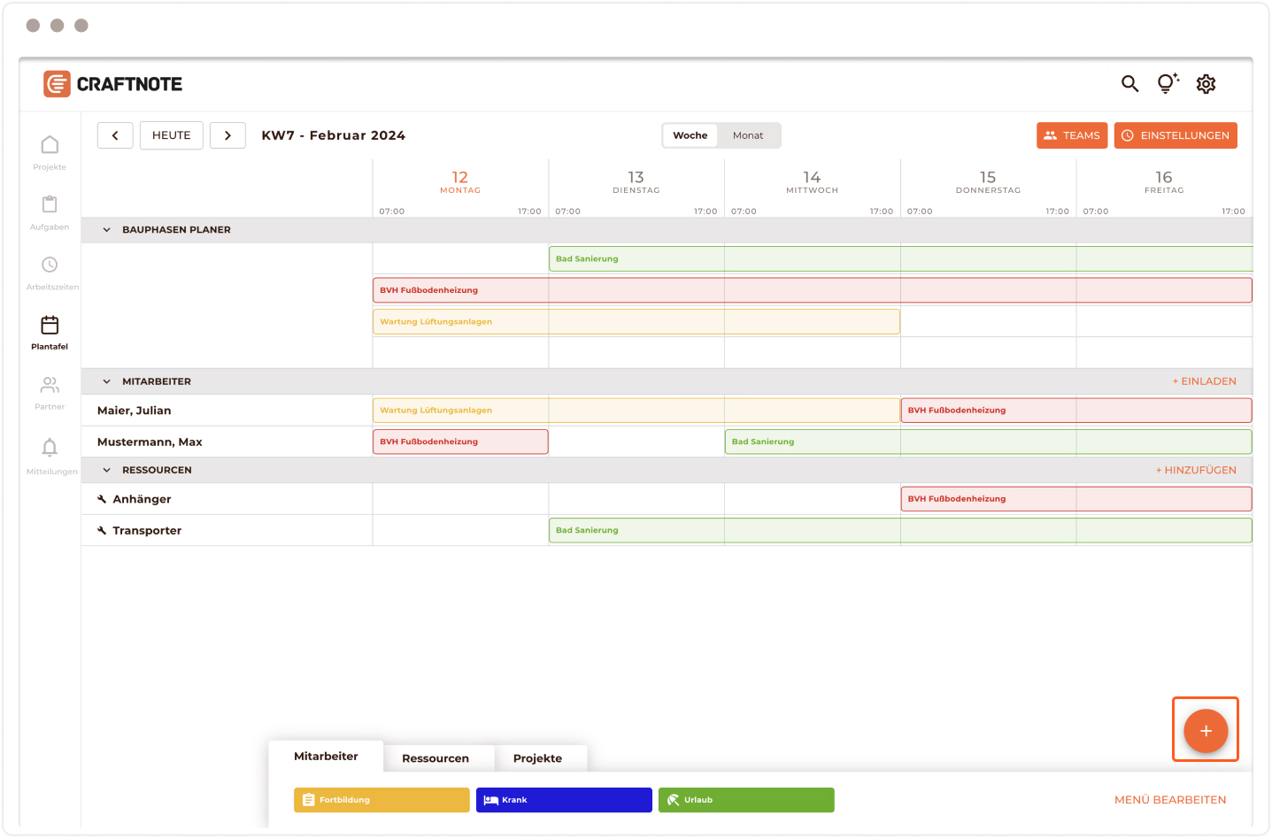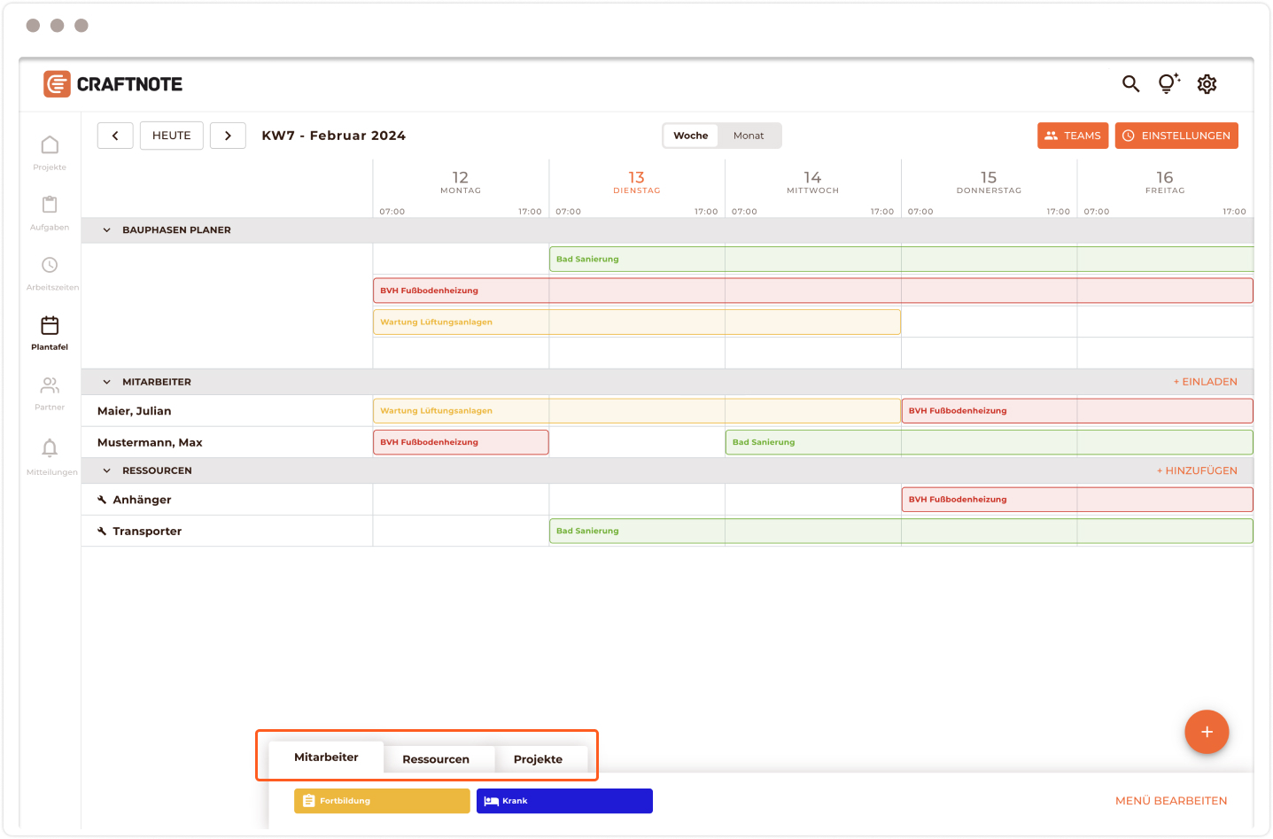 1) Öffne die Craftnote Web-App (PC / Laptop) und wähle den Bereich "Plantafel"aus.