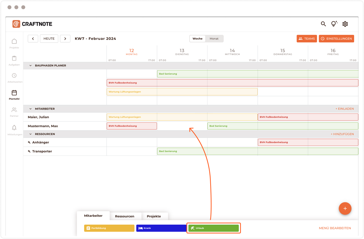 Um den Urlaub Deiner Mitarbeiter in der Plantafel hinterlegen zu können, brauchst Du lediglich die folgenden Schritte zu befolgen: