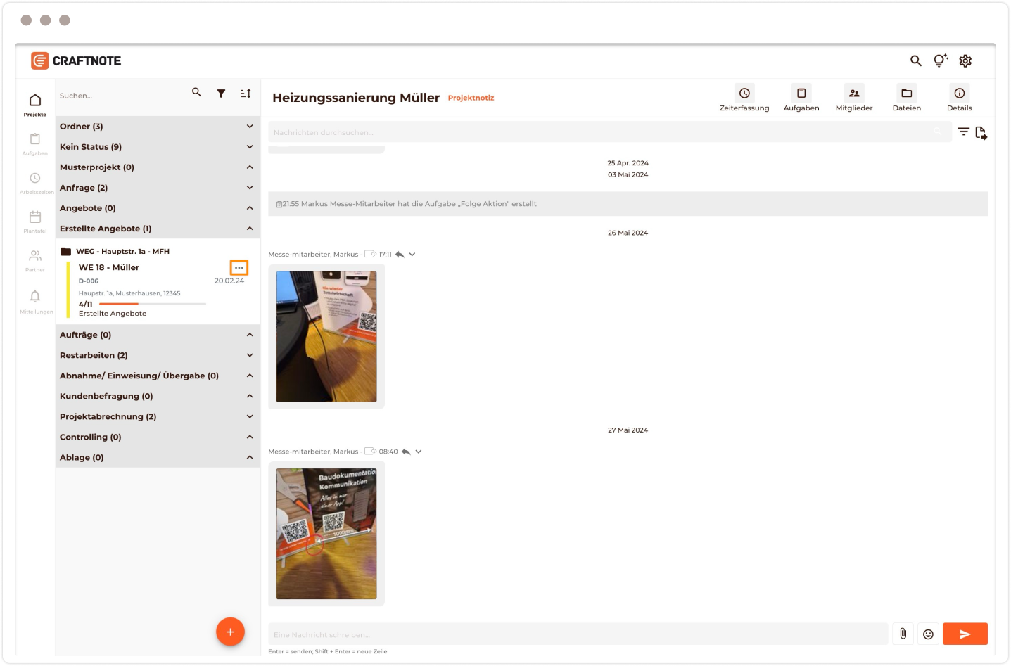 5) Gehe nun in die Projektliste zurück, wähle ein Projekt aus und klicke auf das 3-Punkte-Symbol (°°°).
