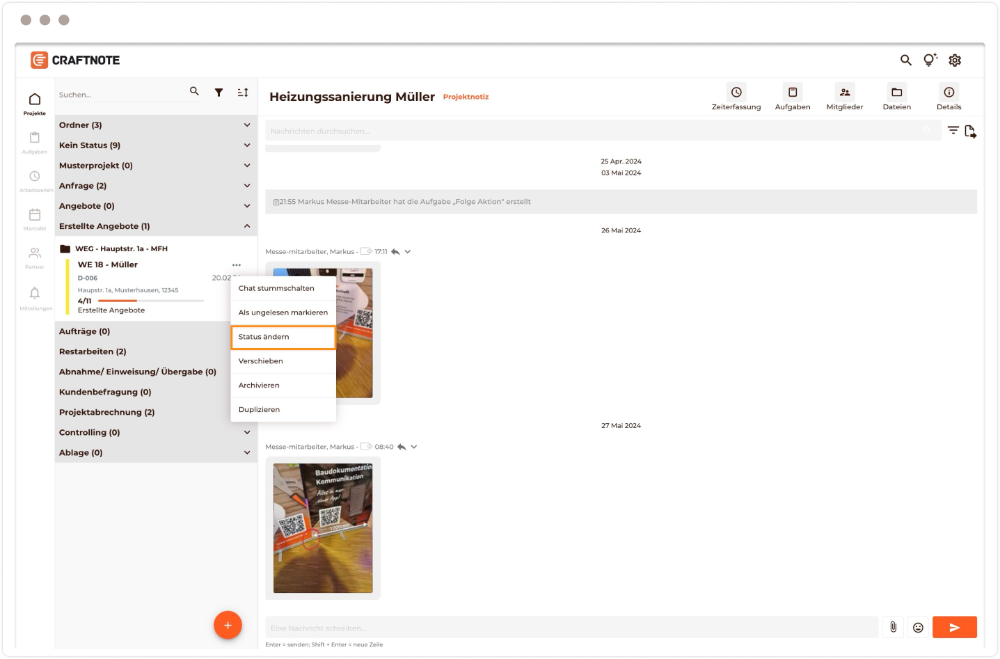 6) Wähle hier im Menü den Eintrag "Status ändern" aus.