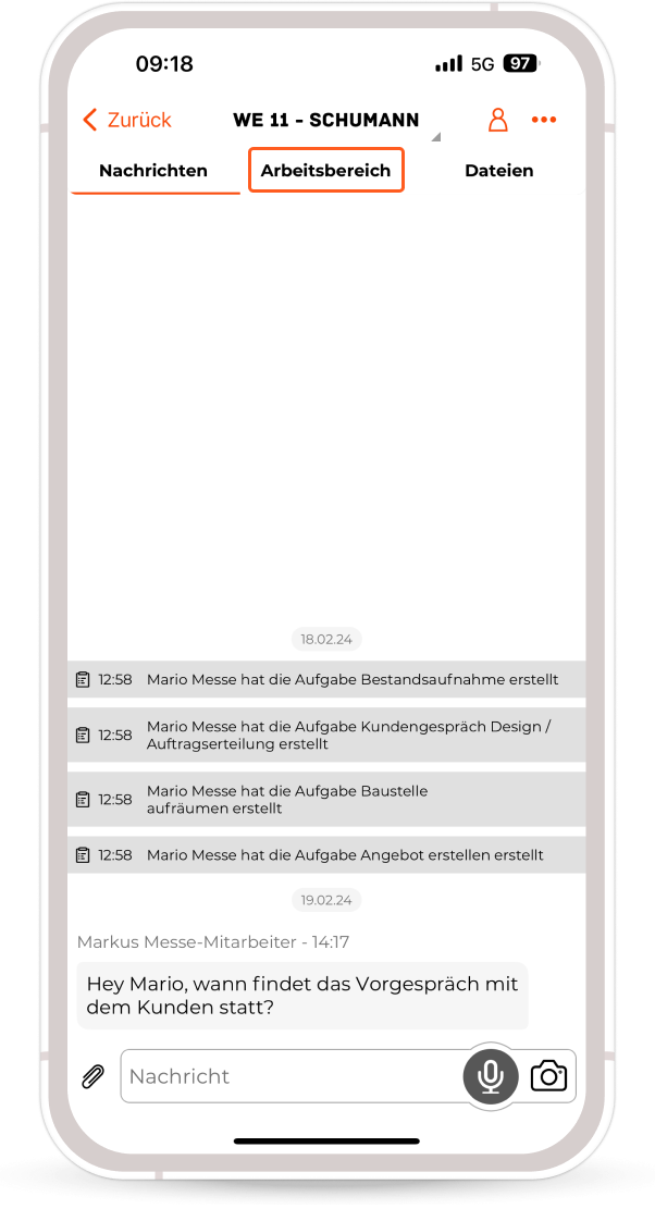 Einträge, die mobil hinterlegt wurden, können von Nutzern mit der in Craftnote zugewiesenen Rolle ‘Inhaber’ oder ‘Projektleiter’ gleichzeitig in der Web-App ausgewertet werden.