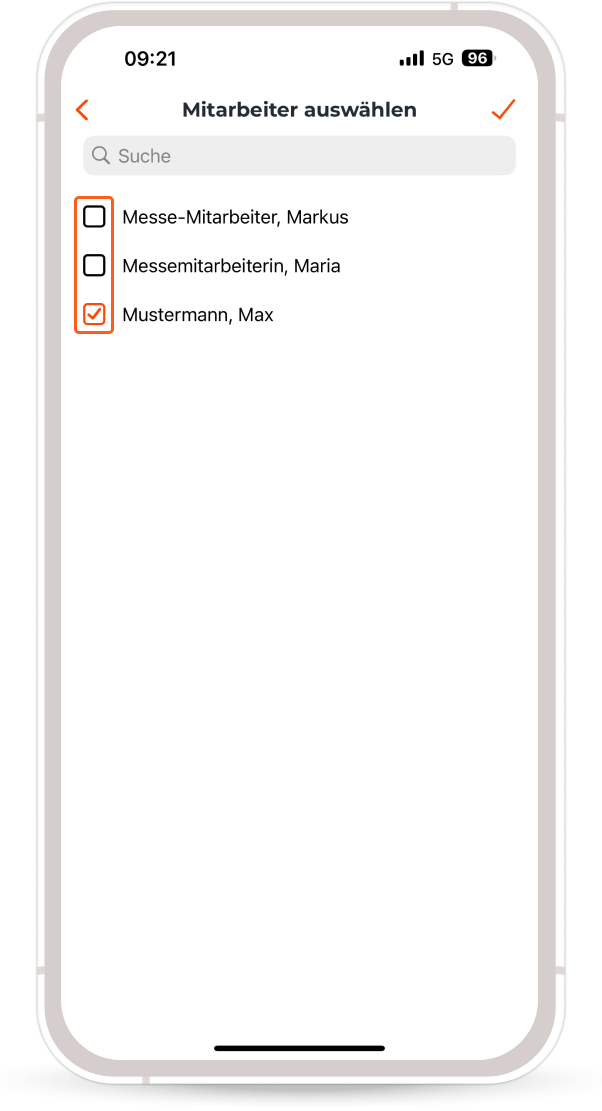 Hier erscheint die Auflistung aller Projektmitglieder, und Du kannst entsprechend eine einzelne Person oder mehrere Personen auswählen.