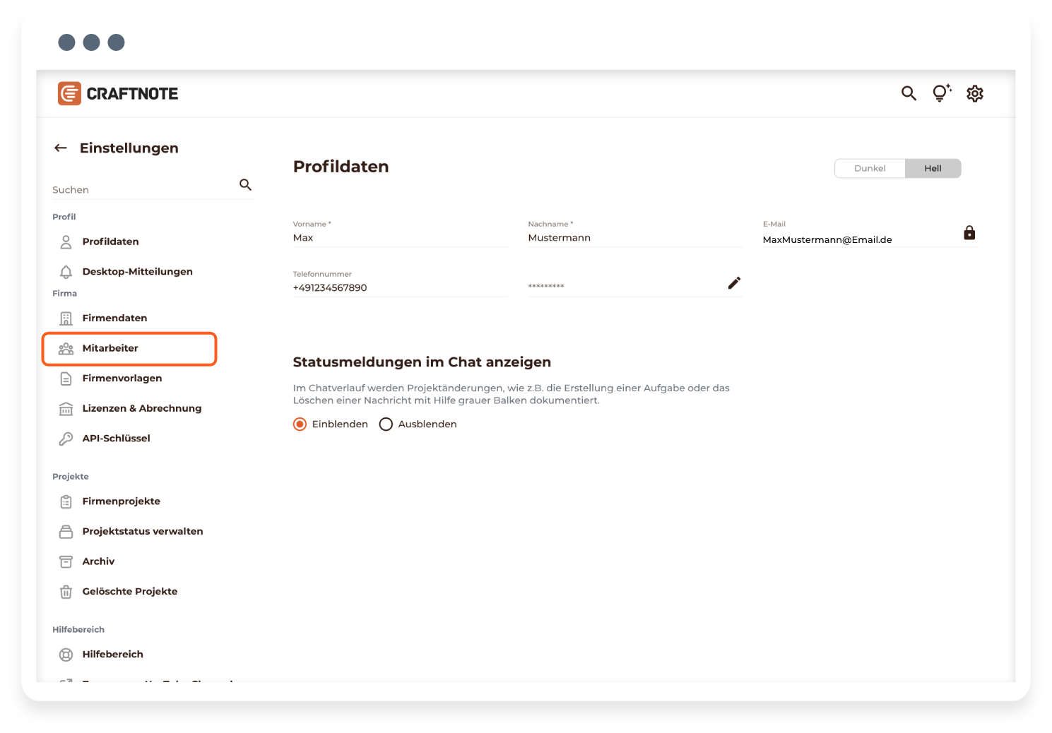 Info: Hat der Mitarbeiter die Craftnote-App bereits installiert, erhält er zusätzlich eine Benachrichtigung in der jeweiligen Craftnote-App. Nach einer kurzen Bestätigung ist der Mitarbeiter in Deiner Craftnote-Firma als interner Mitarbeiter hinterlegt.