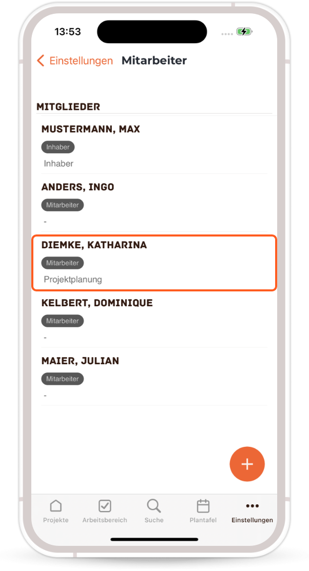 - Mitarbeiter in die Firma einladen & entfernen