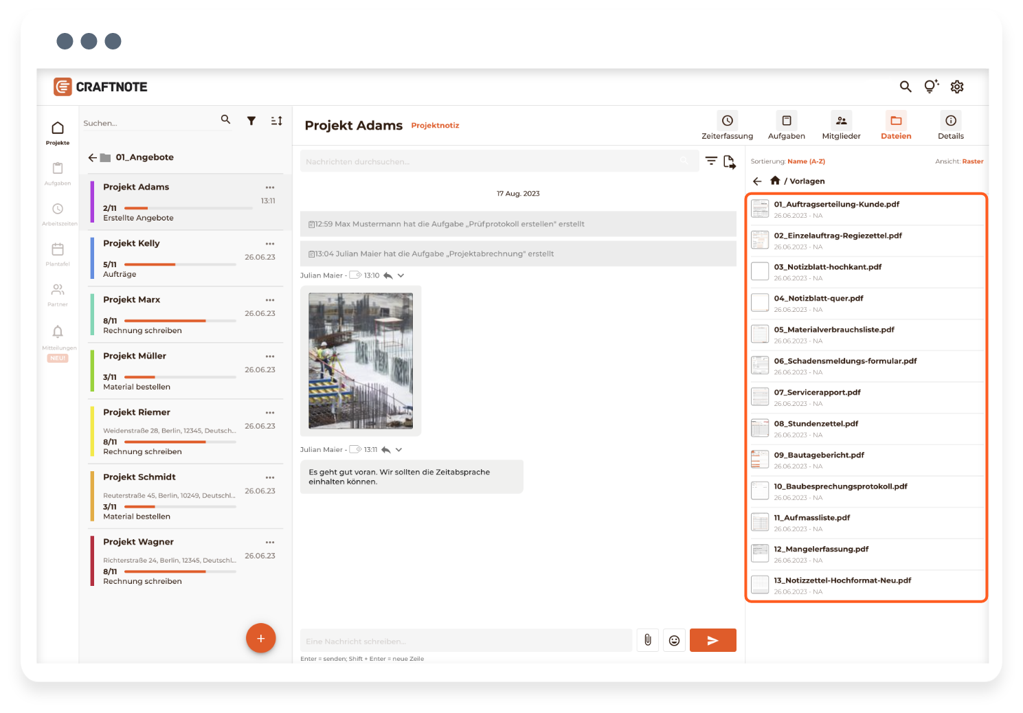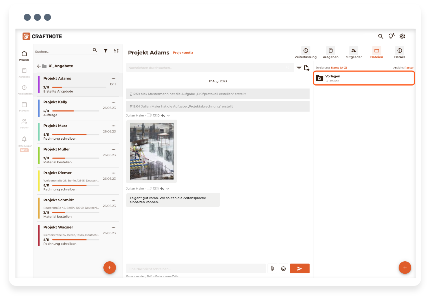 2) Wähle in dem geöffneten Projekt den Bereich "Dateien" (Dateiablage) aus.