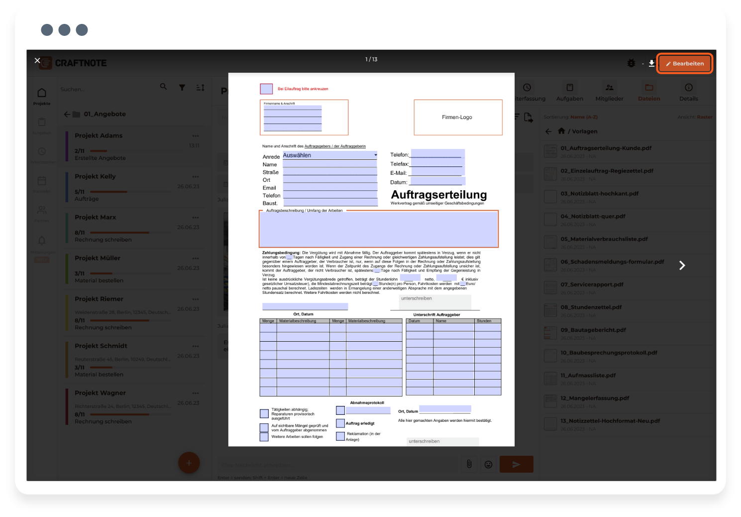 4) Wähle das benötigte PDF-Formular aus dem Ordner "Vorlagen" aus, in dem dieses angeklickt wird.
