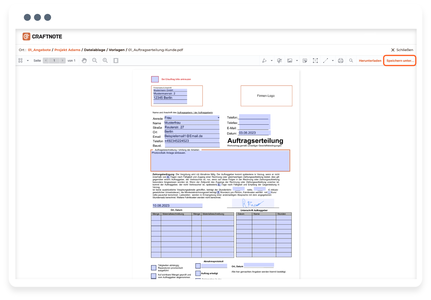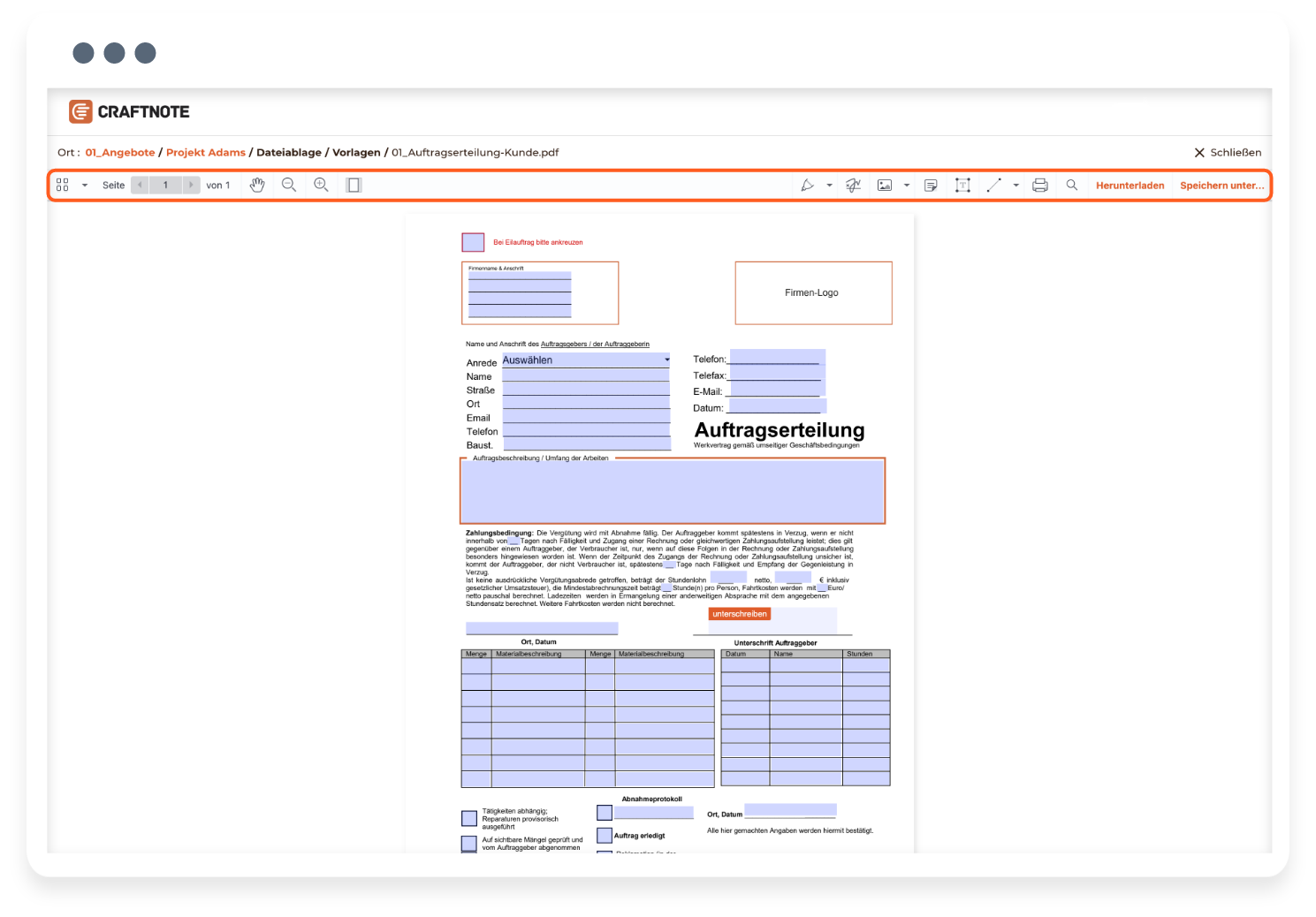 6) Bearbeite das PDF-Formular entsprechend der dort hinterlegten Felder und hinterlege hier zum Beispiel Texte, Signaturen, Notizen & Bilder.