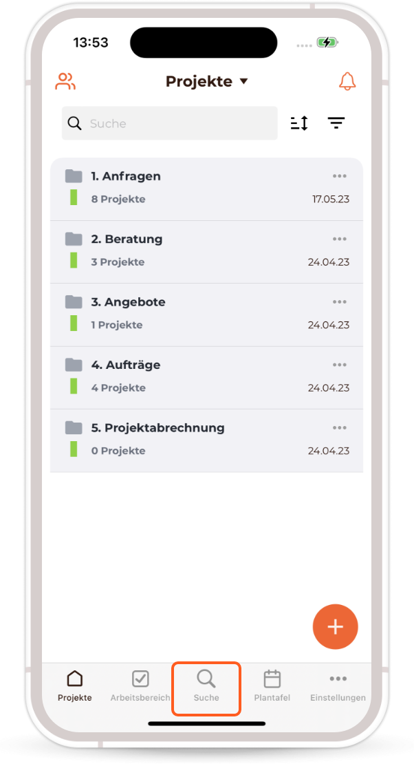 Die Funktion "globale Suchfunktion" findest Du in der mobilen App über einen Klick unten in der Menüleiste auf das Lupen-Symbol.