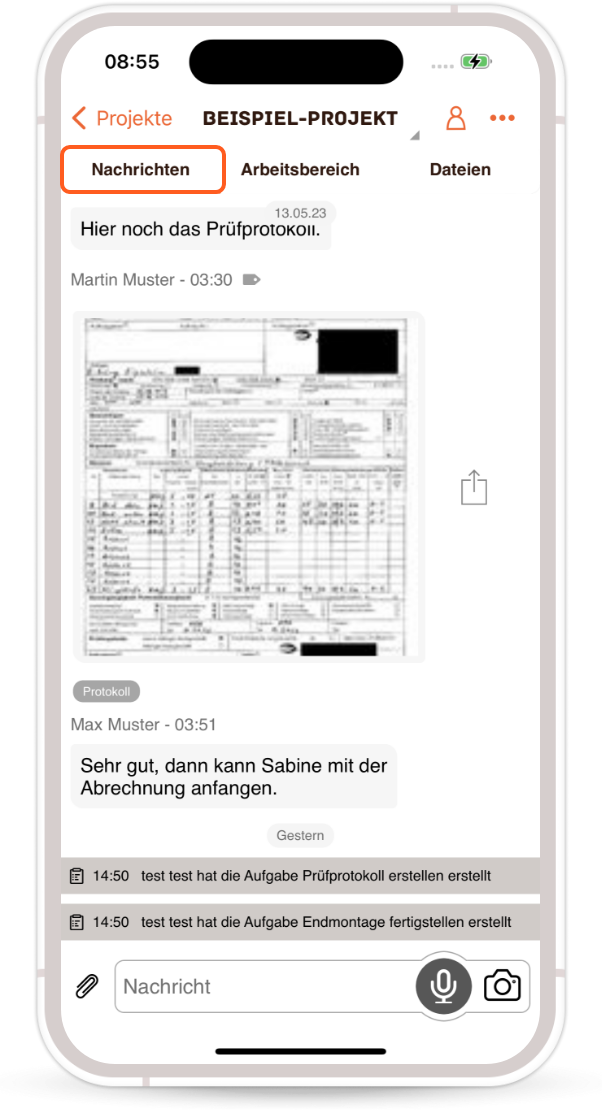 After selecting the project, you will be taken directly to the chat area (messages).