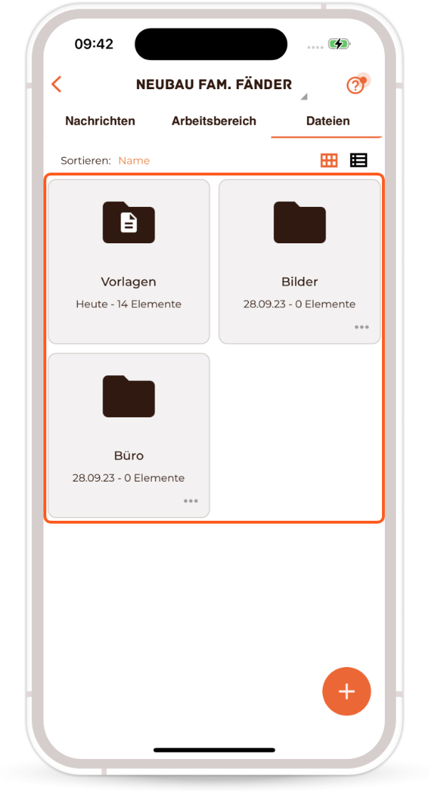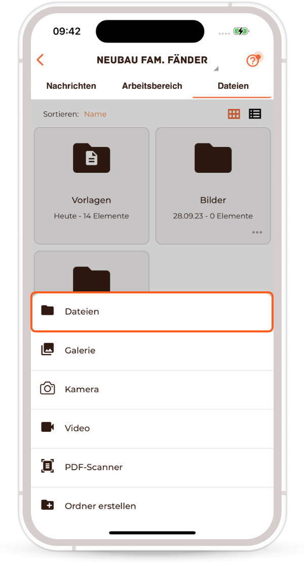 3) Now click on the orange plus sign symbol in the bottom right-hand corner and select "Files" in the menu that opens.