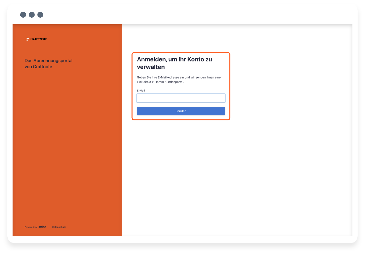 1) After clicking on the link above, simply enter your Craftnote login email address and click on the blue "Send" button.