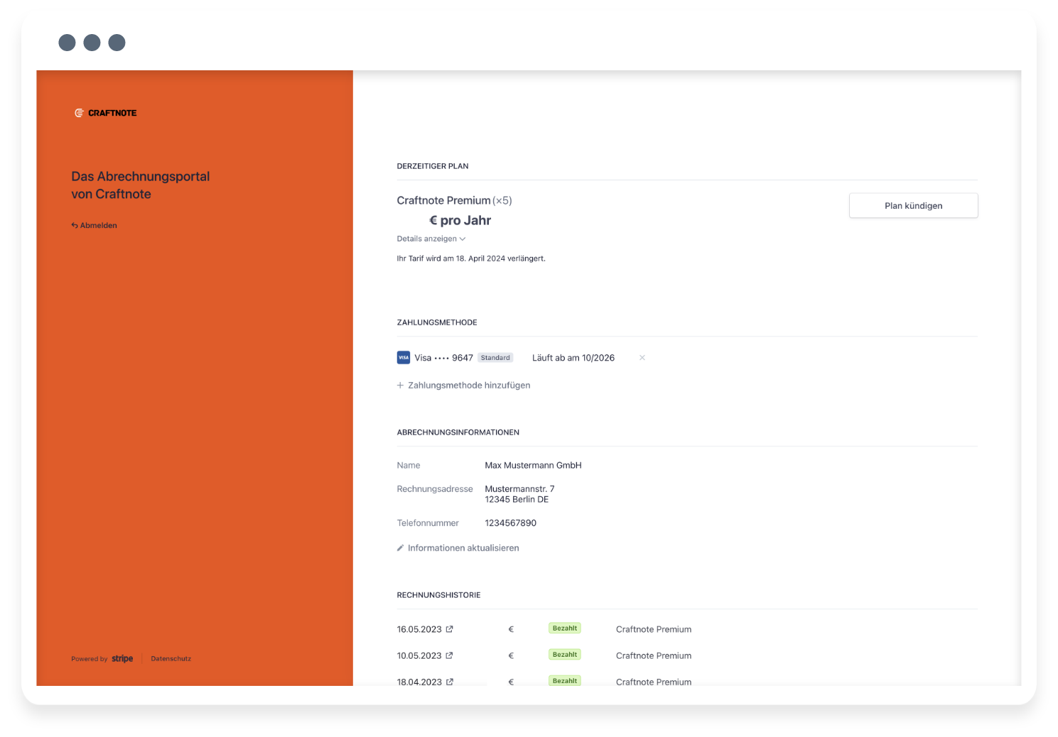 - Payment method (SEPA direct debit & credit card)