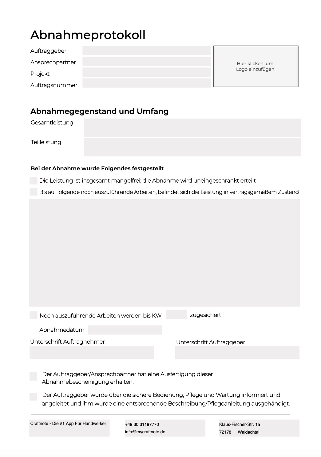 In the help article ‘Storing PDF company templates’, we explain how you can store the PDF templates in the Craftnote web app once you have received them so that they are automatically available in every project you create.