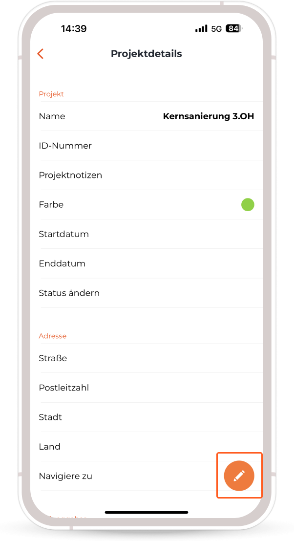 6) After clicking on the orange pencil at the bottom right, you have the option of making various entries. These include, among others: