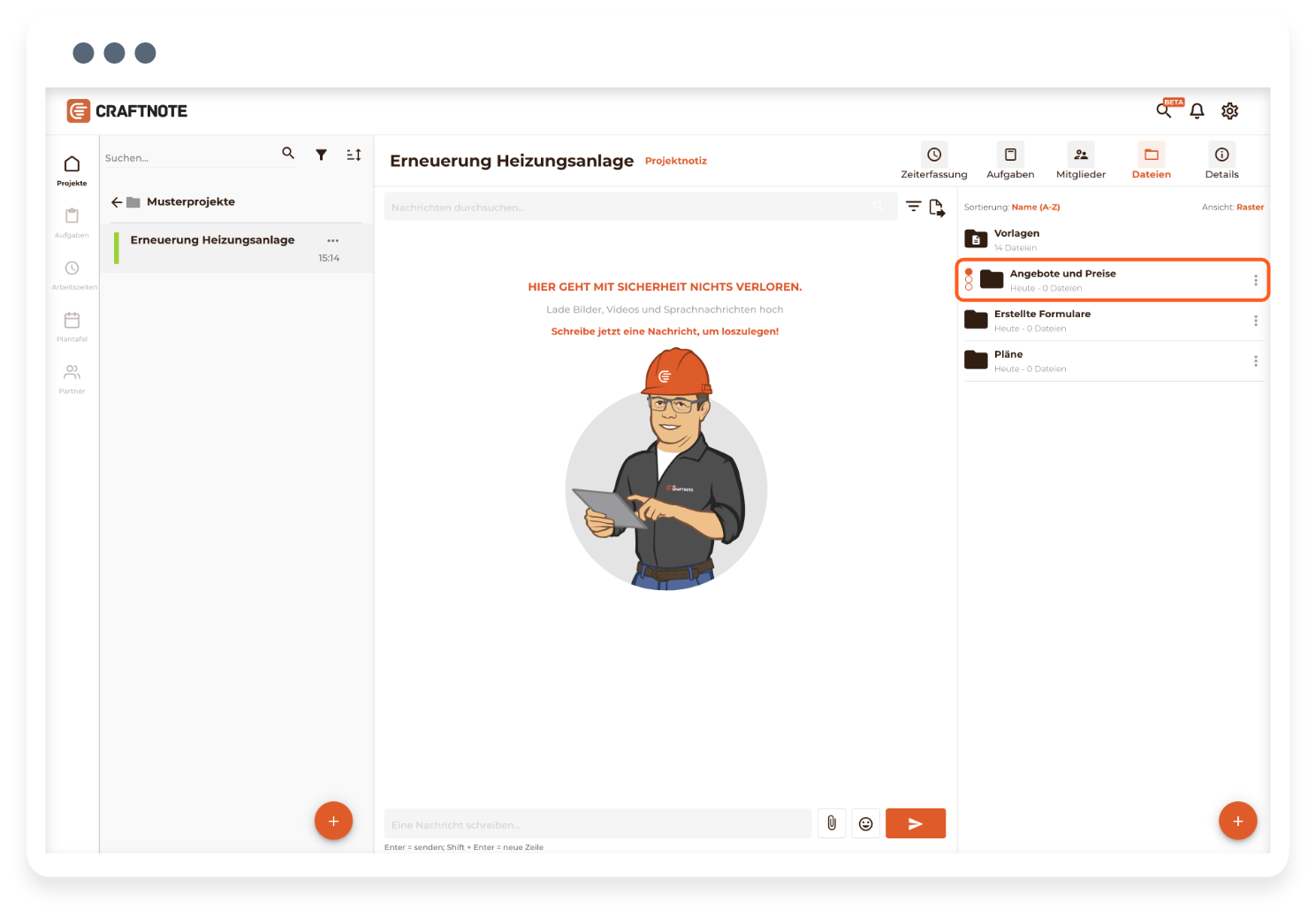 In our example, the folders ‘Quotations and prices’, ‘Created forms’ and ‘Plans’ were created under the file storage.