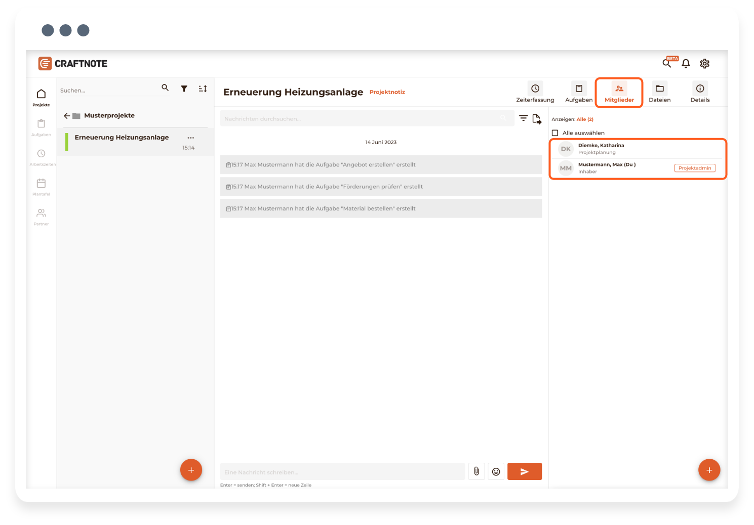 In the sample project, you can already specify which of your employees should always be a direct member of the project. For example, your employee from the project planning can always be stored directly as a member in a new project. If she is a member of the sample project, she can be transferred without any problems.
