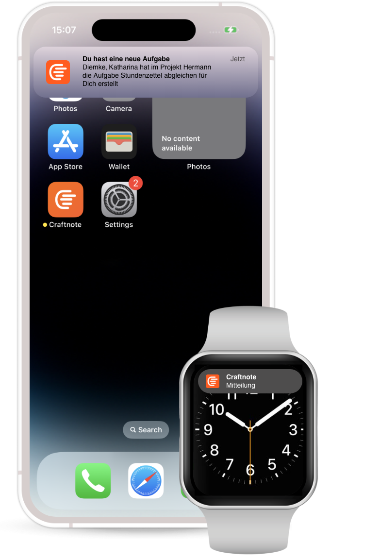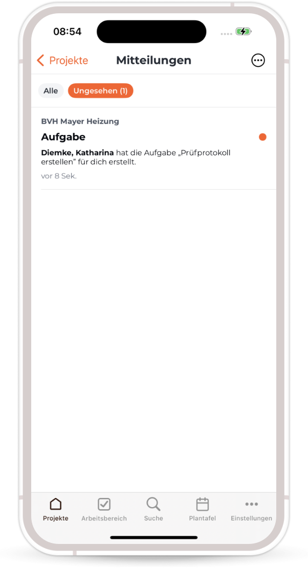 In Craftnote, push notifications are sent for various scenarios, including tasks. also for tasks. You can also view these messages in the message centre view them.